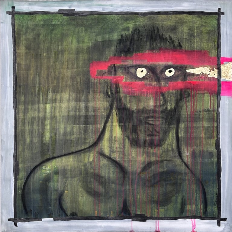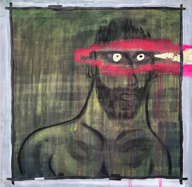 Watercolor, Acrylic, Oil Pastel and Charcoal on Gesso Canvas with Gold Leaf