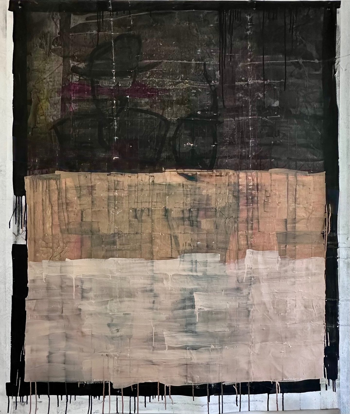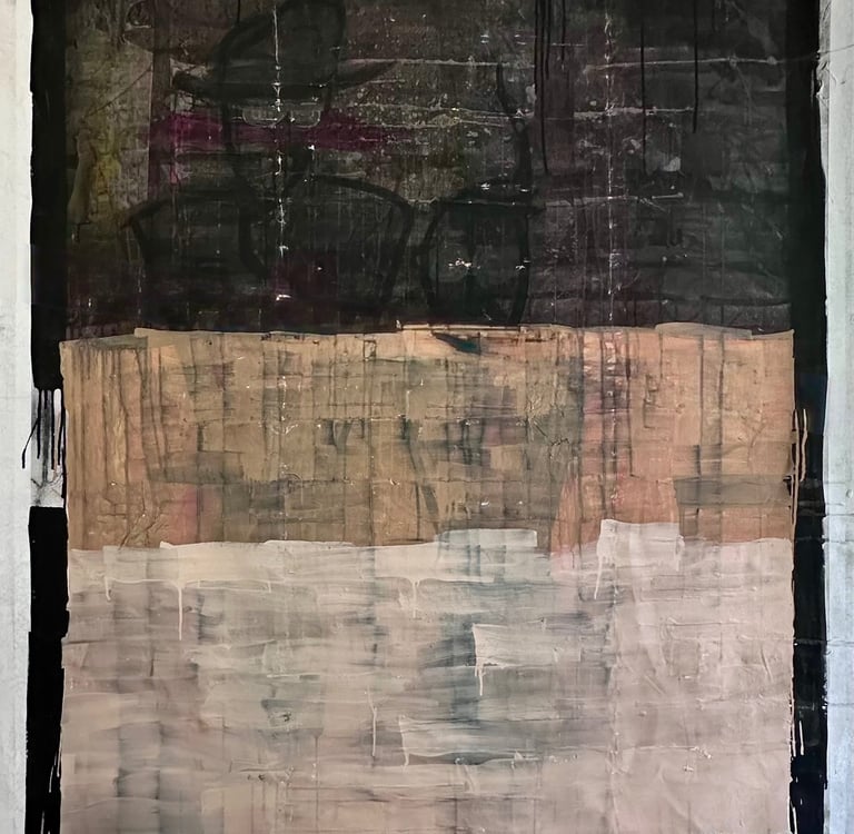 Acrylic, Charcoal, Pastel, Japanese Calligraphy Ink on Raw Canvas