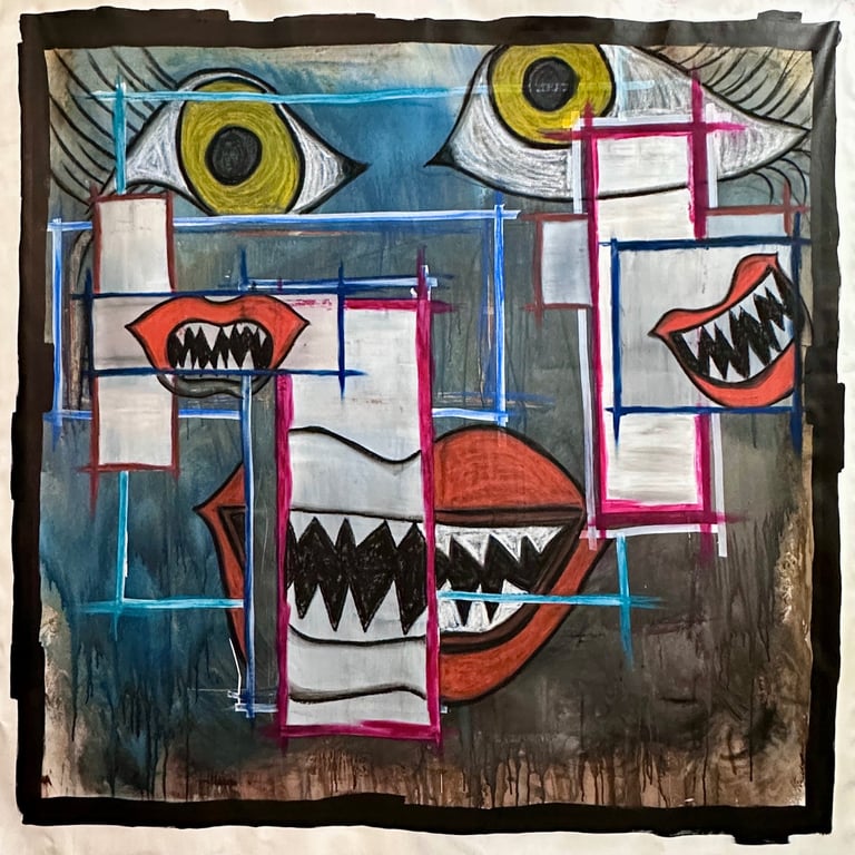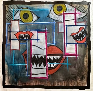 Watercolor, Acrylic, Oil Pastel and Charcoal on Gesso Canvas